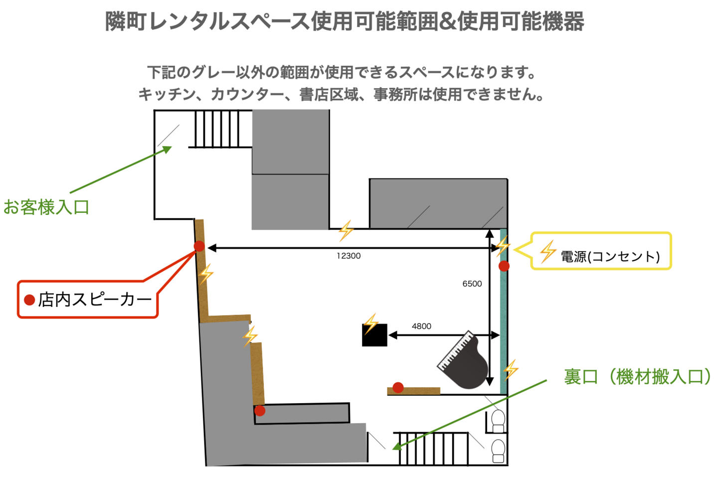 ※貸し出しは時間制になります。ご準備・撤収等のお時間も貸し出し時間に含まれますので、余裕を持ってお借りいただきますようお願いいたします。