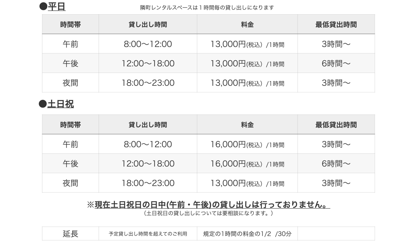 ・貸し出しに関しては、隣町珈琲主催のイベントを優先しますので、空いている日をご相談ください。