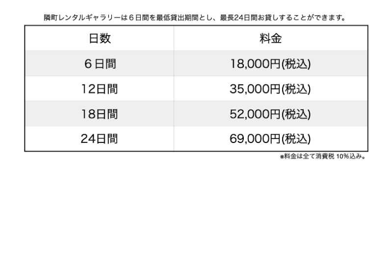 下記を「隣町レンタルギャラリー規約」を必ずご参照いただき、貸し出しご希望の際は、店舗スタッフ、または隣町珈琲までお電話いただきますようお願いいたします。