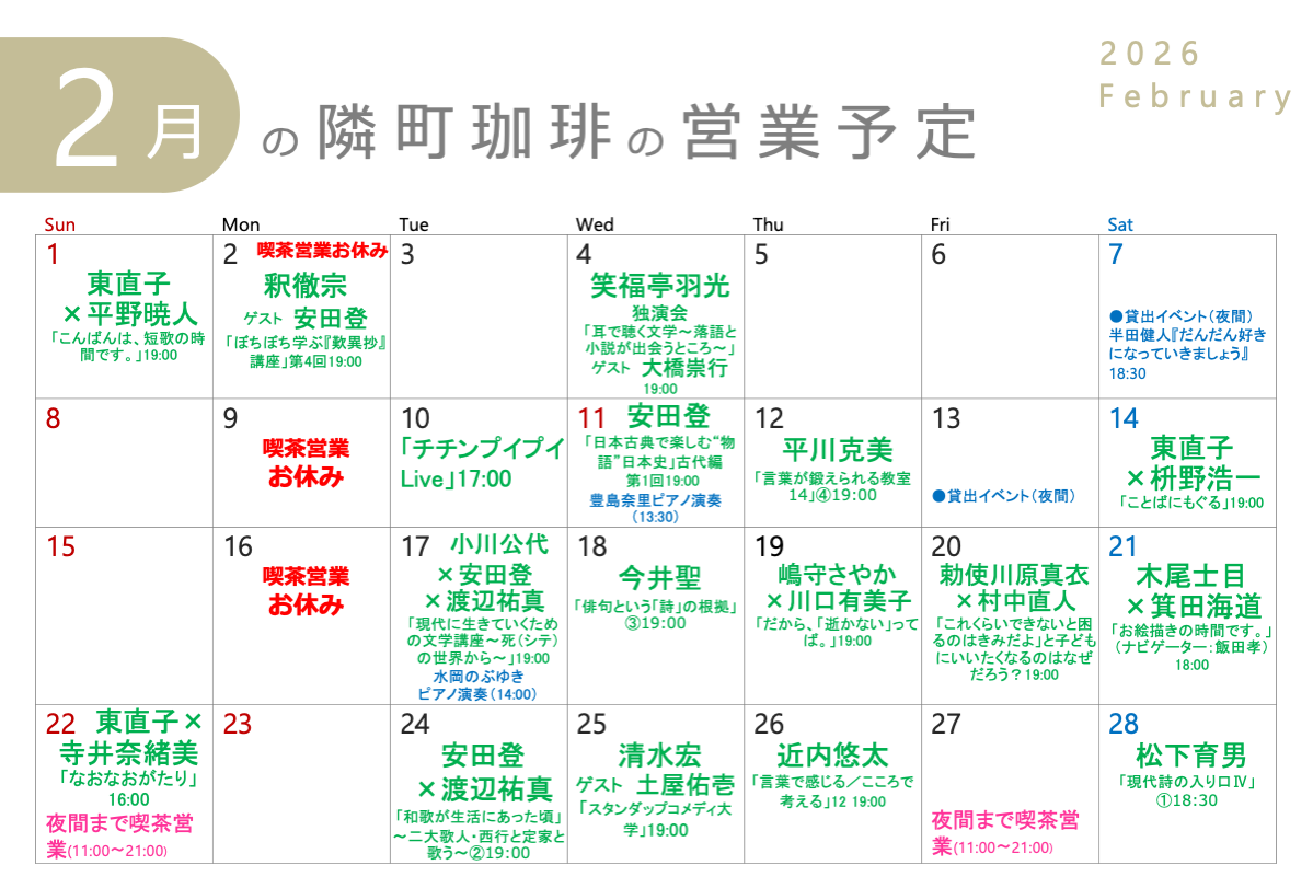 2月の定休日