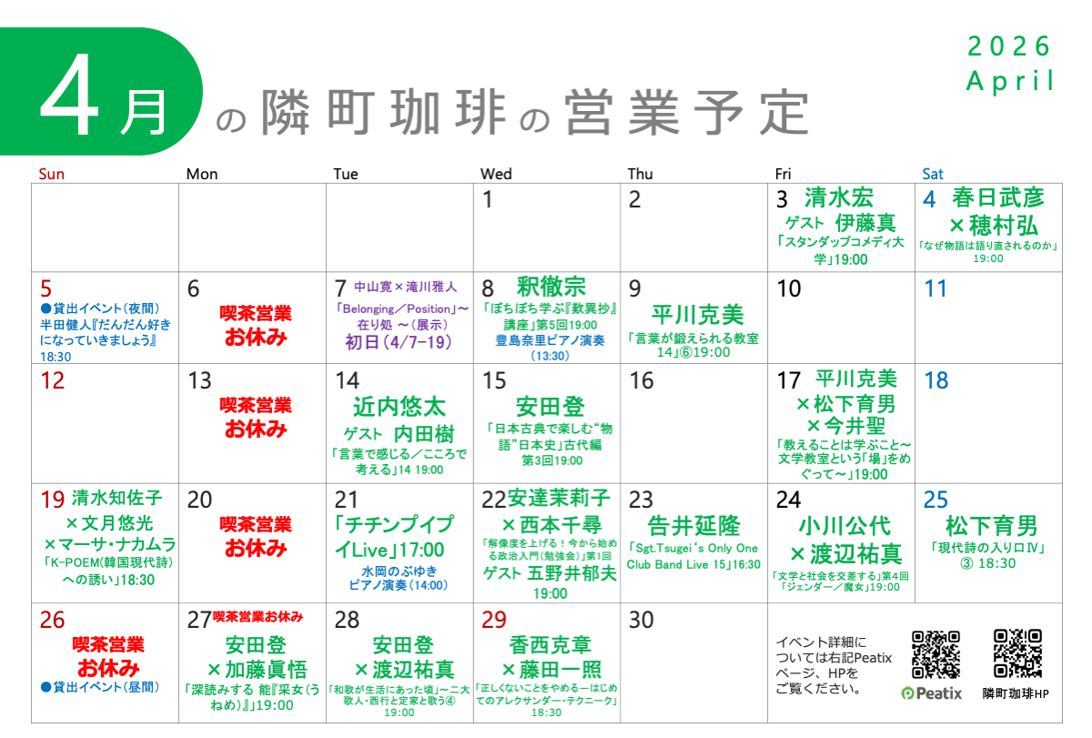 4月の定休日