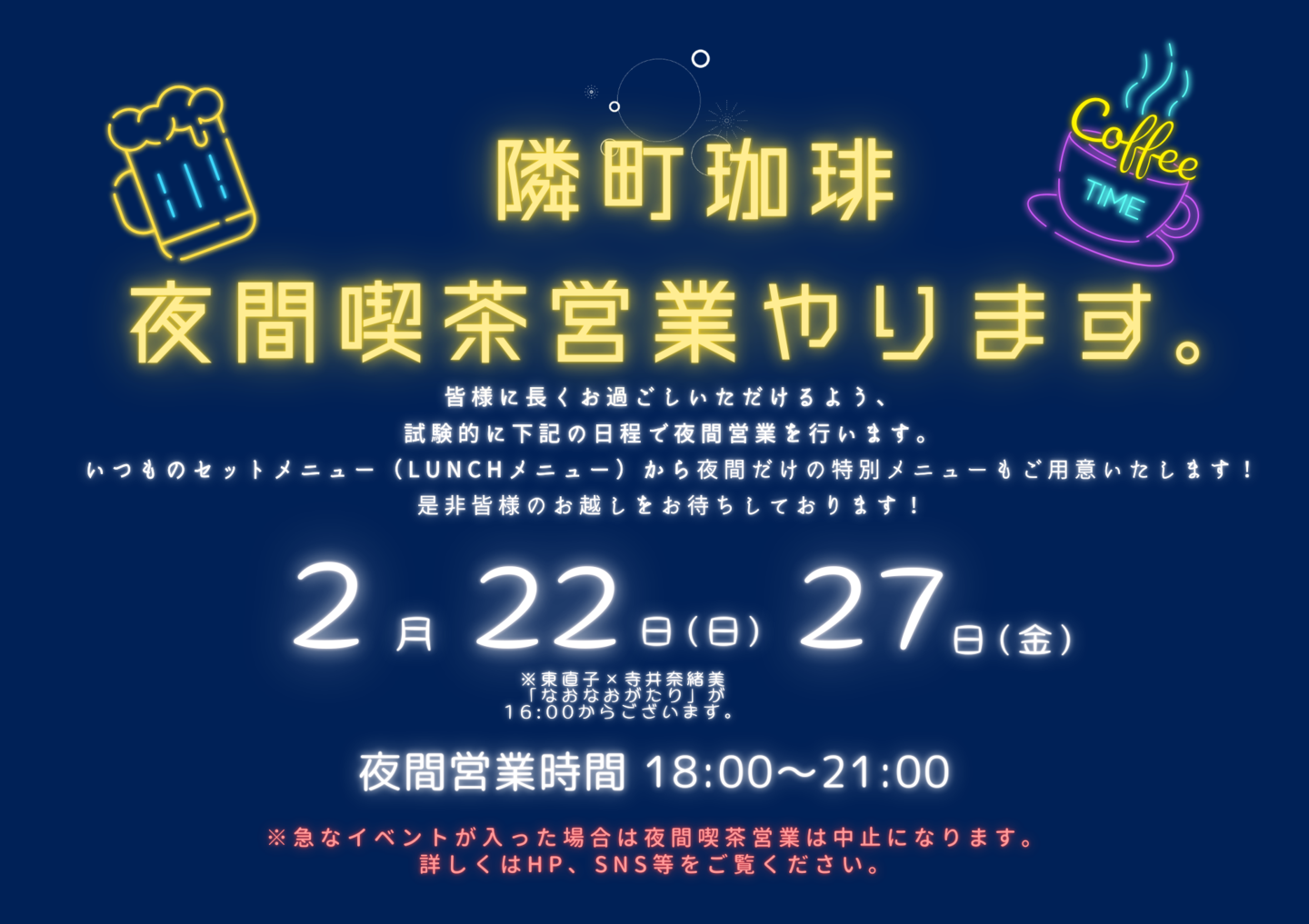 夜間まで喫茶営業の日(〜21:00)